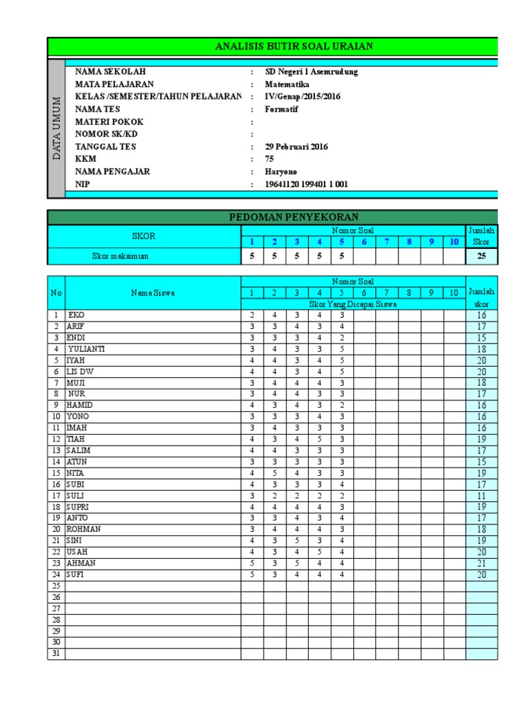 Aplikasi Analisis Butir Soal Sd Mi Smp Mts Sma Ma Smk Format