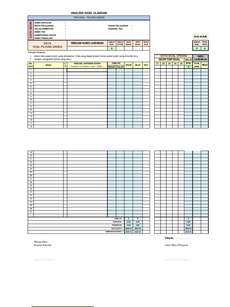 Aplikasi Excel Untuk Koreksi Uas Analisis Butir Soal Adikiss Net