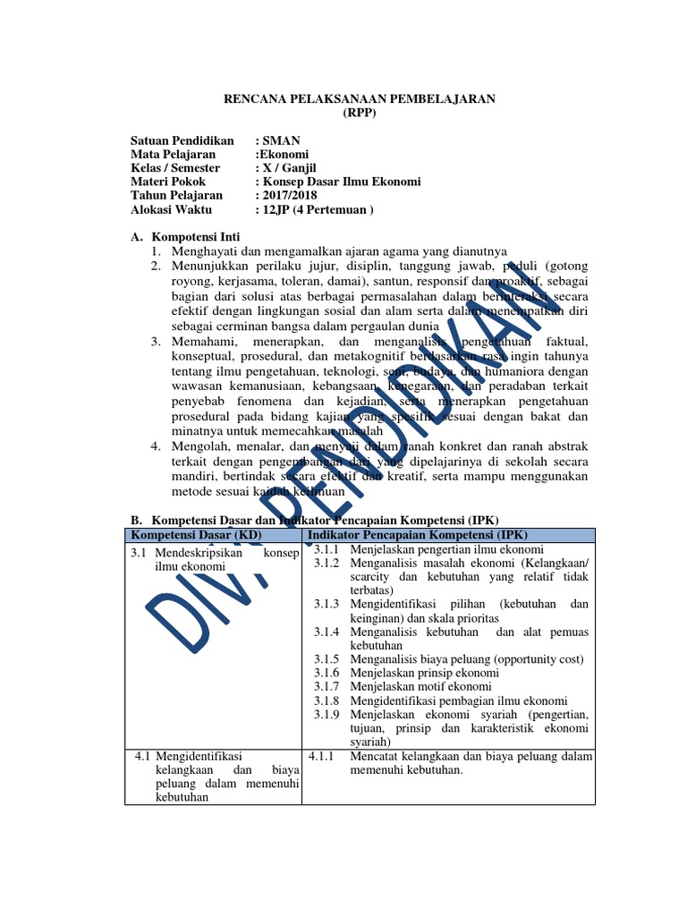 Rpp Revisi 2017 Ekonomi Kelas 10 Sma Docx
