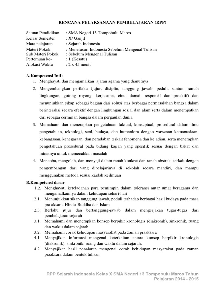 Rpp Kurikulum 2013 Kelas X Sma Mapel Sejarah Indonesia Wajib