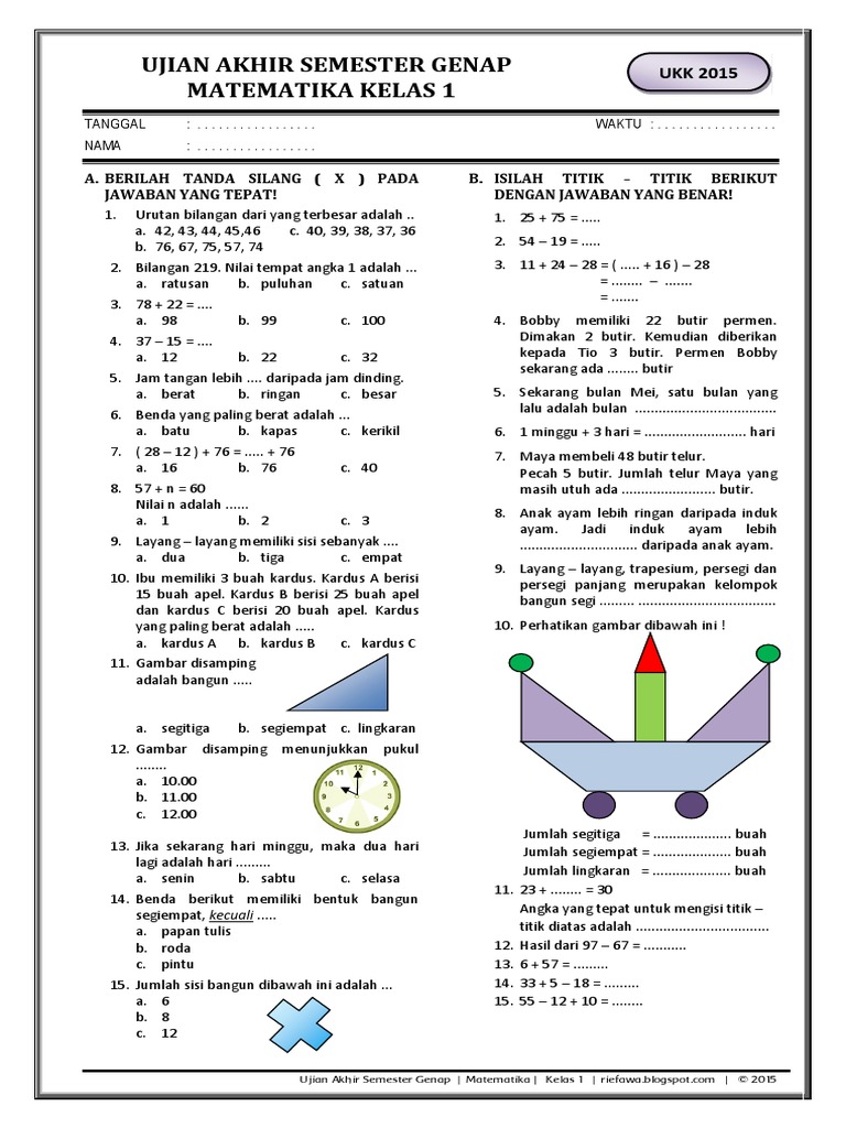 Contoh Soal Uas Matematika Kelas 1 Sd Semester 1 Casinivi S Blog