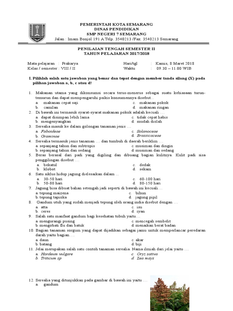 Soal Ujian Prakarya Kelas 8 Semester 2 Guru Ilmu Sosial