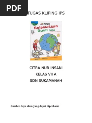Sumber daya alam yang dapat diperbarui ialah sumber daya alam yang dapat diusahakan kembali keberadaannya dan dapat dimanfaatkan secara terus menerus contohnya. Tentu saja kliping sering menjadi tugas yang diberikan oleh guru baik itu tingkat sd smp atau sma. Dalam pelajaran bahasa indonesia seringkali kita disuruh untuk mengumpulkan berbagai tulisan koran majalah atau brosur mengenai suatu topik dan mengumpulkan dan menempelkannya dalam kertas hvs atau buku.