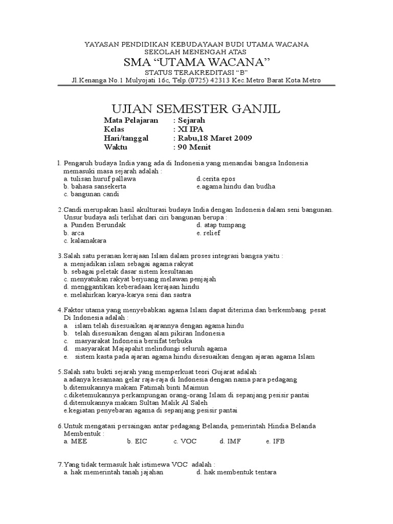 Soal Uts Sejarah Peminatan Kelas Xi