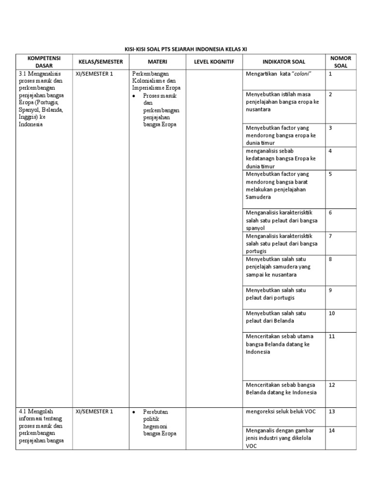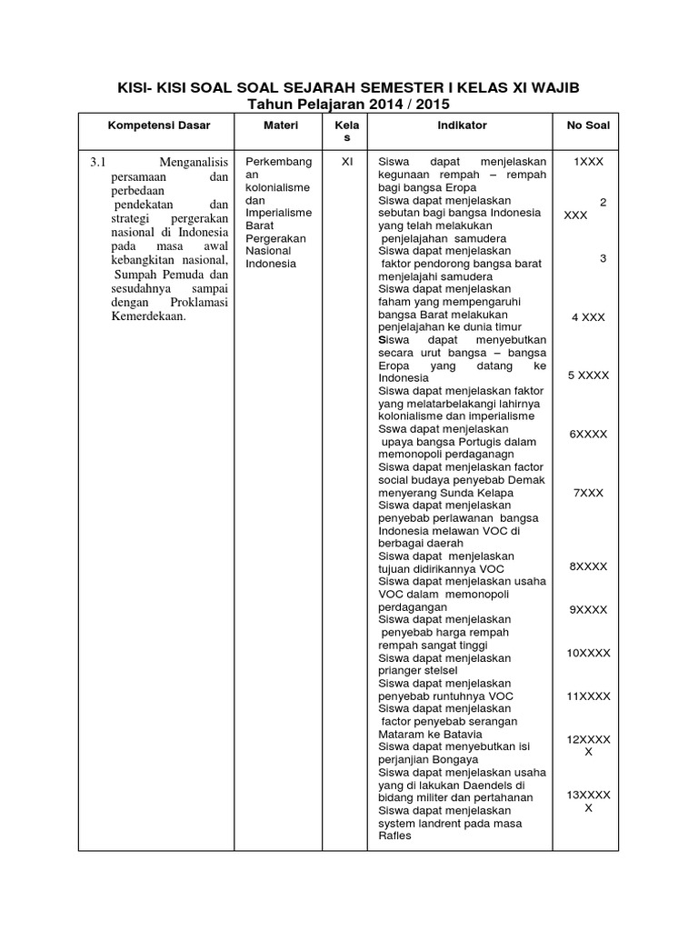 Kisi Kisi Soal Soal Sejarah Semester I Kelas Xi Wajib