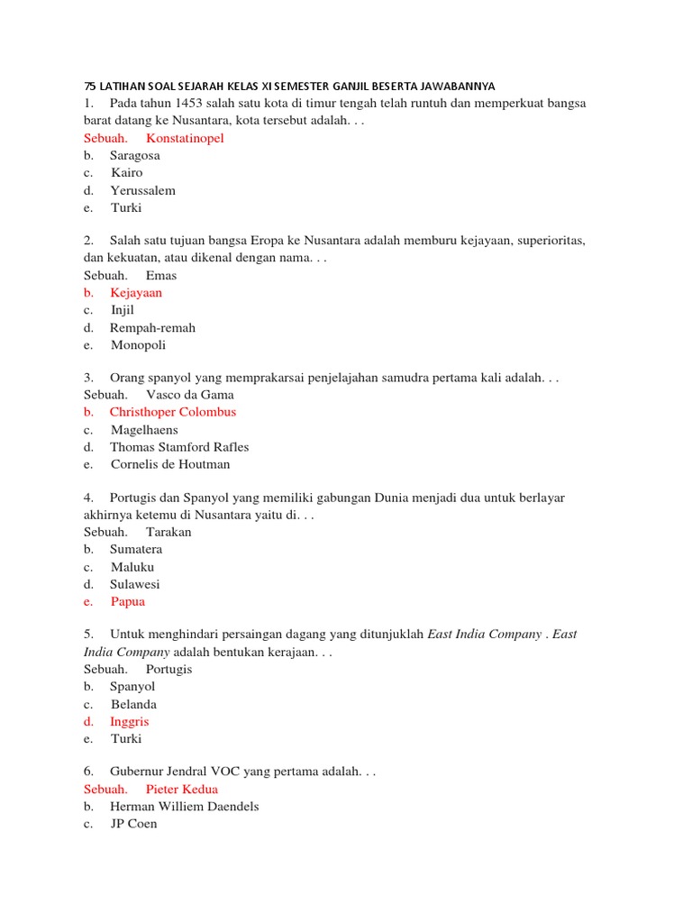 75 Latihan Soal Sejarah Kelas Xi Semester Ganjil Beserta Jawabannya