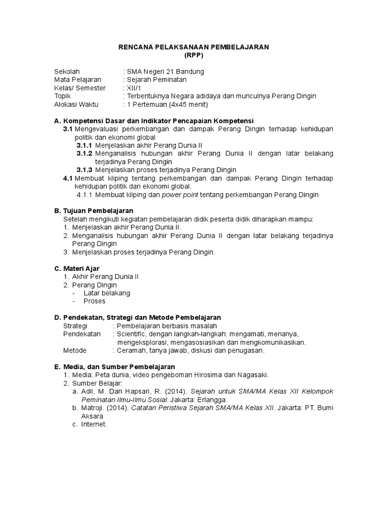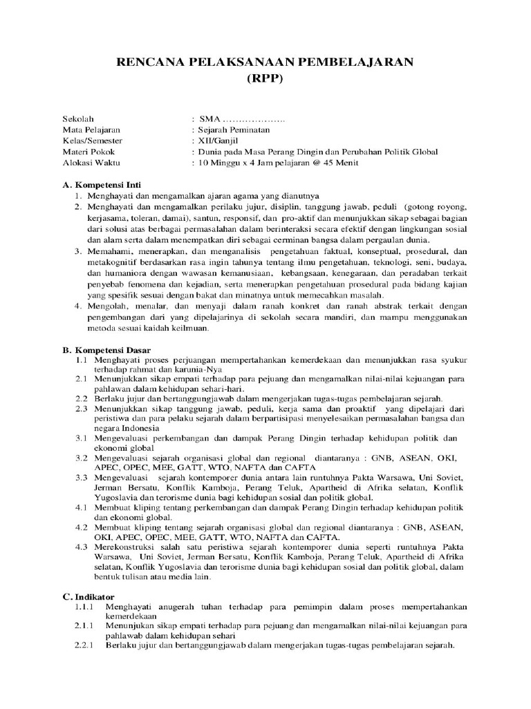 Rpp Sejarah Peminatan Sma Kelas Xii