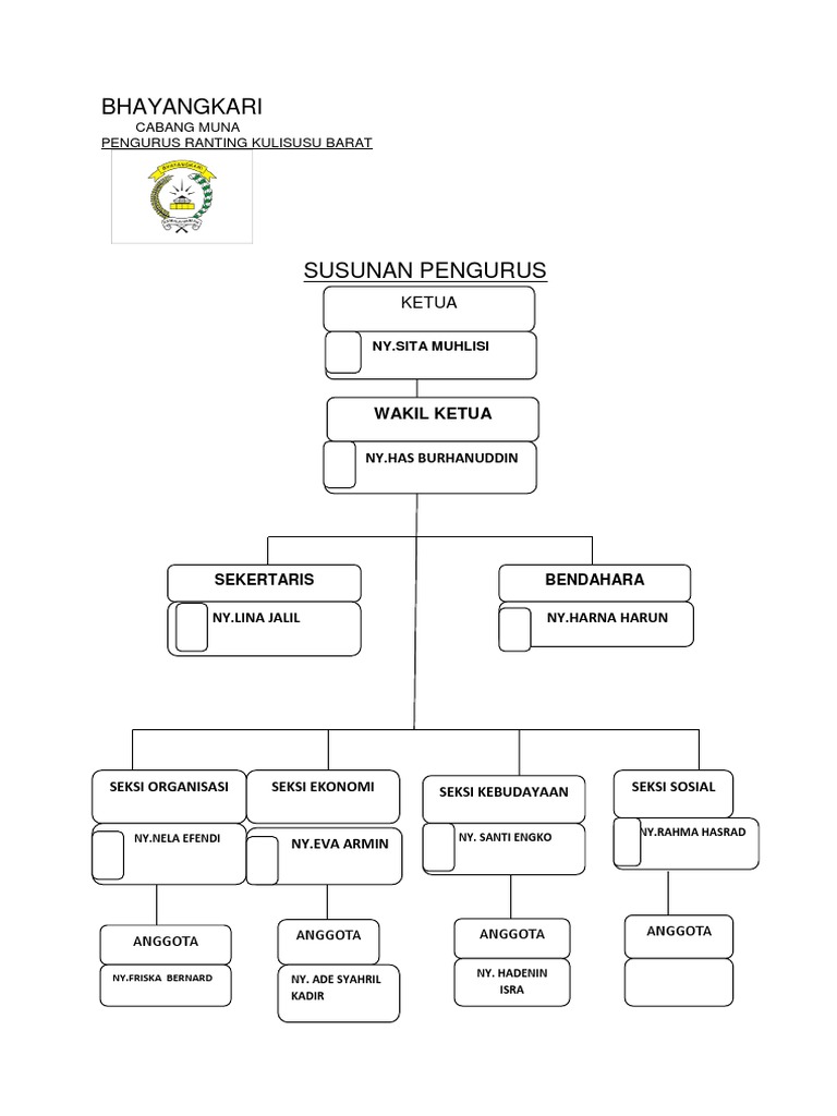 Susunan pengurus bhayangkari. Toboali laspela pada acara susunan rapat paripurna pengurus cabang bhayangkari bangka selatan basel ketua bhayangkari cabang basel yang lama riezka aris menyampaikan laporan umum pertanggung jawaban kepada ketua bhayangkari cabang basel yang baru novita ferdinand di aula wira pratama polres basel kamis 22 8. Dalam perkembangannya yayasan kemala bhayangkari melaksanakan penyempurnaan perubahan struktur dan susunan pengurus dengan mempedomani segala ketentuan dalam undang undang ri no 16 tahun 2001 yang disempurnakan dengan perubahan undang undang ri no 28 tahun 2004 tentang perubahan undang undang ri no 16 tahun 2001 tentang yayasan. Ketua bhayangkari ranting secabang solok kota.