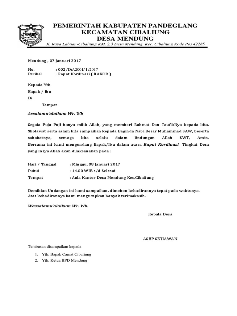 1 lembar perihal. Terlebih masyarakat indonesia yang memang selalu mengutamakan musyawarah. Surat undangan desa resmi biasanya digunakan tamu undangan di desa dalam acara kegiatan rapat atau musyawarah perencanaan pembangunan desa musrenbang desa dan kegiatan kegiatan resmi lainnya di desa oleh instansi pemerintahan desa pemerintah desa dan bpd maupun lembaga kemasyarakatan desa pkk lembaga adat tokoh agama karang taruna lpm dan lain lain.