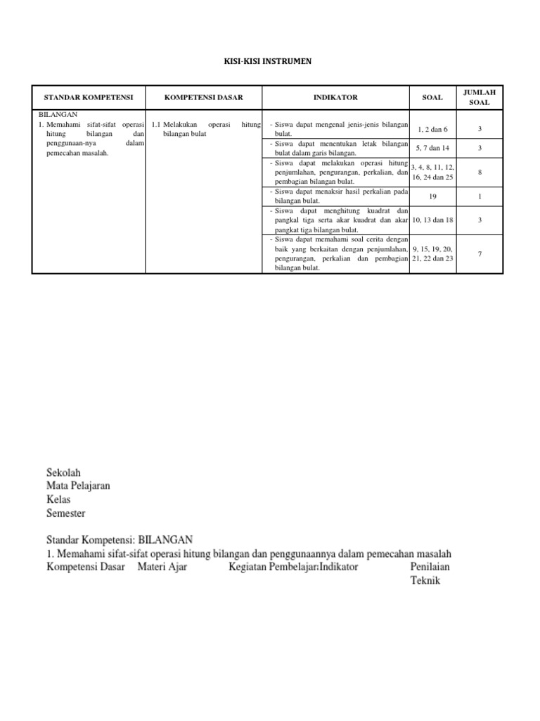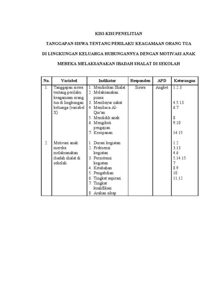 Pdf Kisi Kisi Instrumen Auliya Arsinta Academia Edu