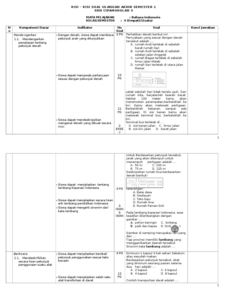 Kisi Kisi Soal Uas Bhs Indonesia Kelas 4 Smtr 1