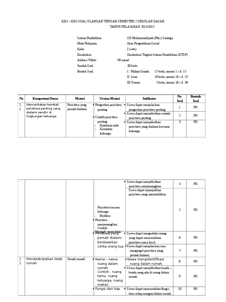 Kisi Kisi Soal Kelas 1 Sd Semester 2 Guru Ilmu Sosial