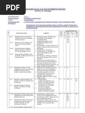 Kumpulan Kisi Kisi Soal Pas Pai Kelas 1 2 3 4 5 Dan 6 Sd Mi Kurikulum 2013 Tahun 2019 2020 Ruang Pendidikan
