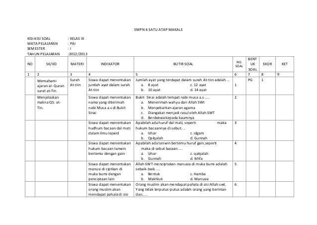 Pai Kelas Contoh Format Kisi Kisi Soal K13 Sd Bagikan Contoh