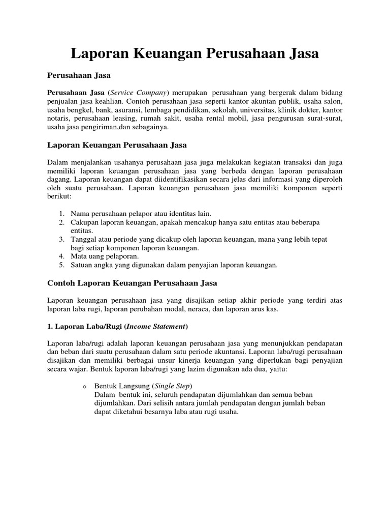 Doc Contoh Laporan Keuangan Perusahaan Jasa Lengkap Beserta Penjelasannya Sahabat Akuntansi Academia Edu