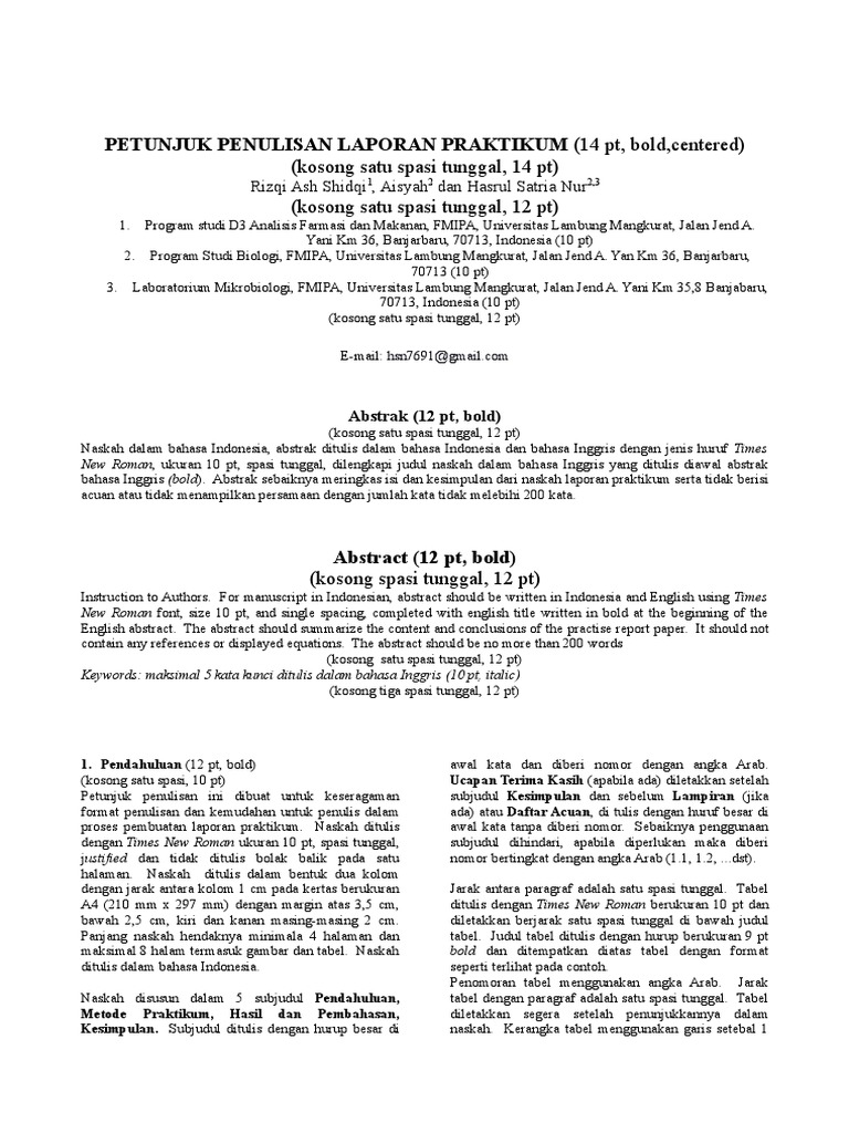 Contoh Laporan Praktikum Dalam Bahasa Inggris Kumpulan Contoh Laporan