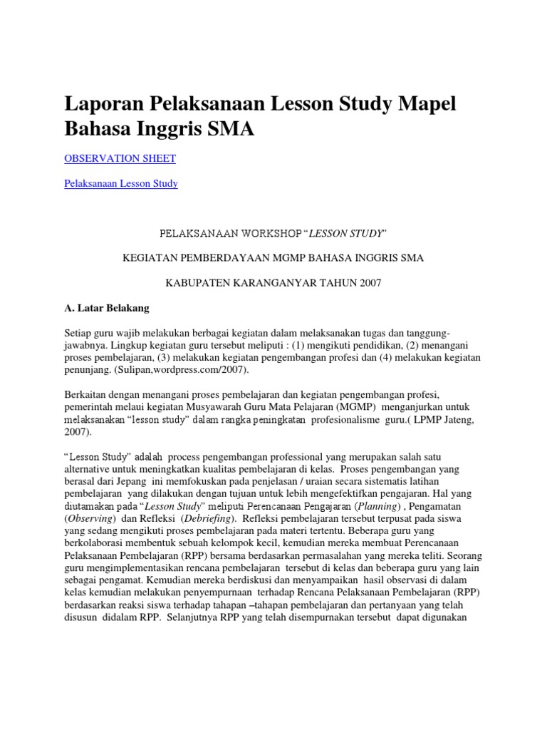 Laporan Pelaksanaan Lesson Study Mapel Bahasa Inggris