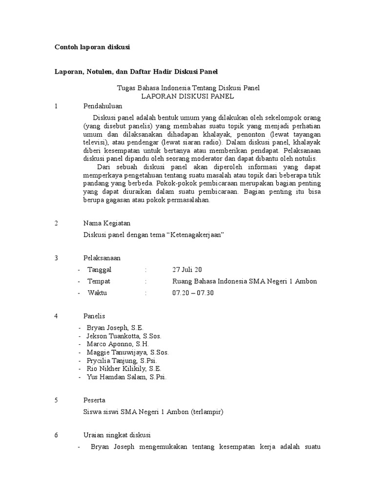 Contoh Format Laporan Diskusi Pdf Document