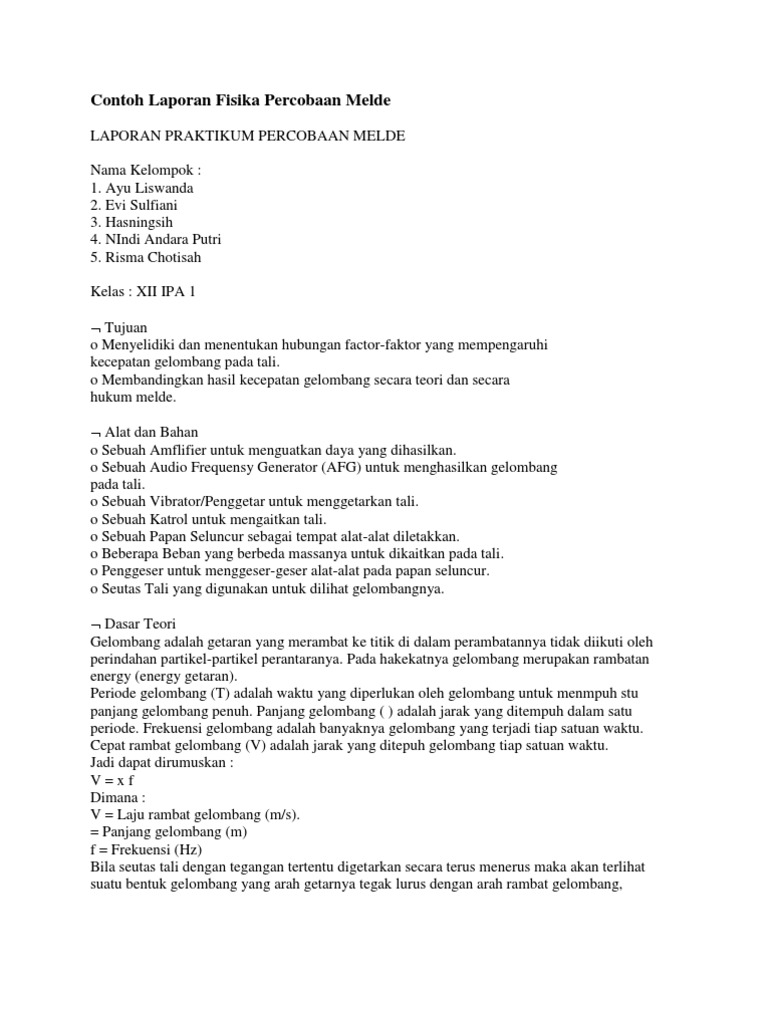 Contoh Laporan Fisika Percobaan Melde