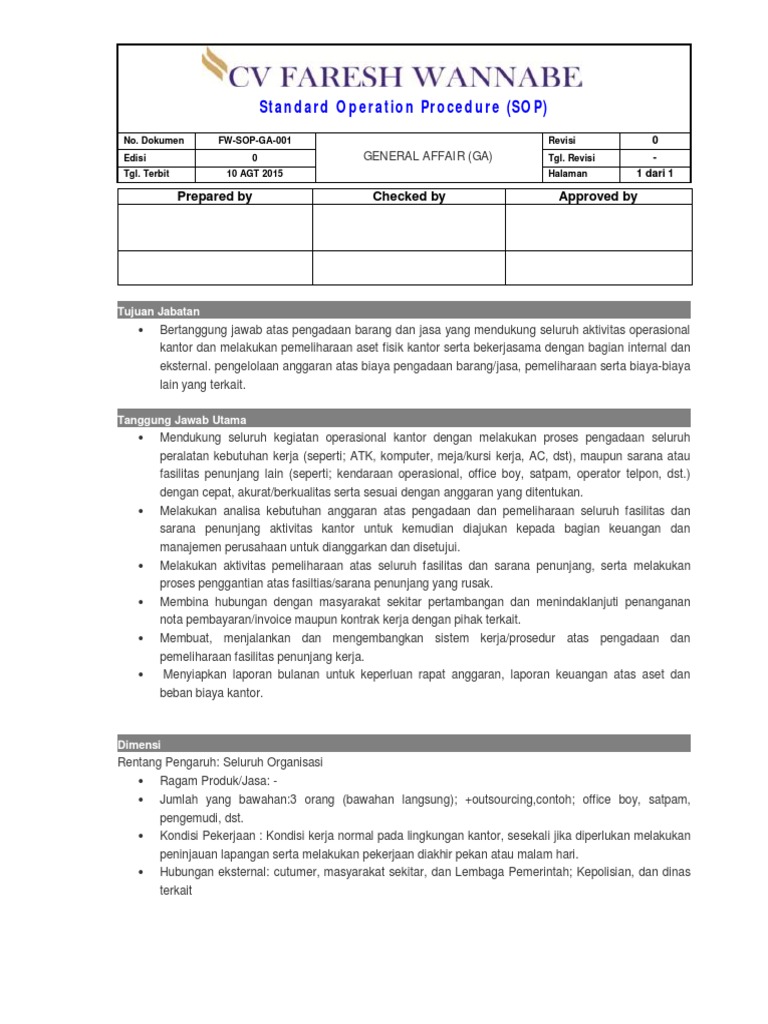 Master Sop Menyediakan Contoh Sop General Affair Ga Dari Berbagai Jenis Dan Bidang Perusahaan