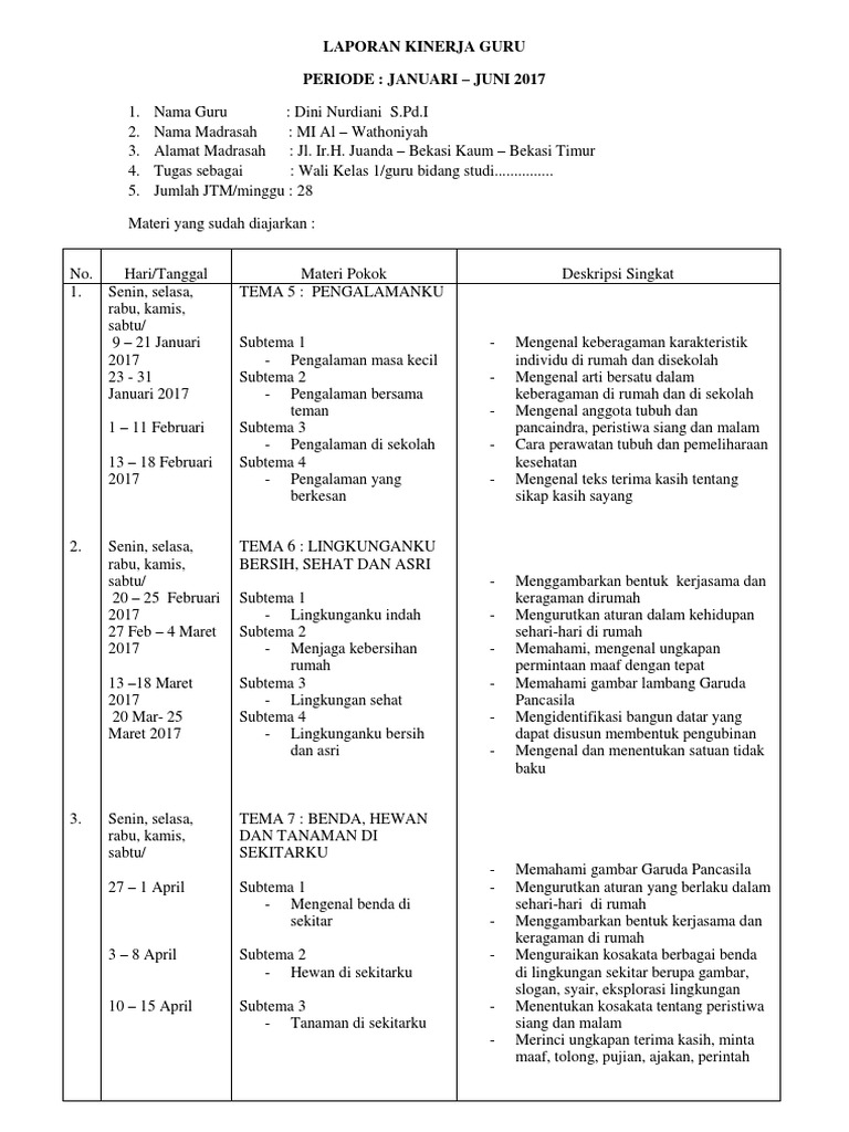 Contoh Format Laporan Kinerja Guru Selama Bekerja Dari Rumah