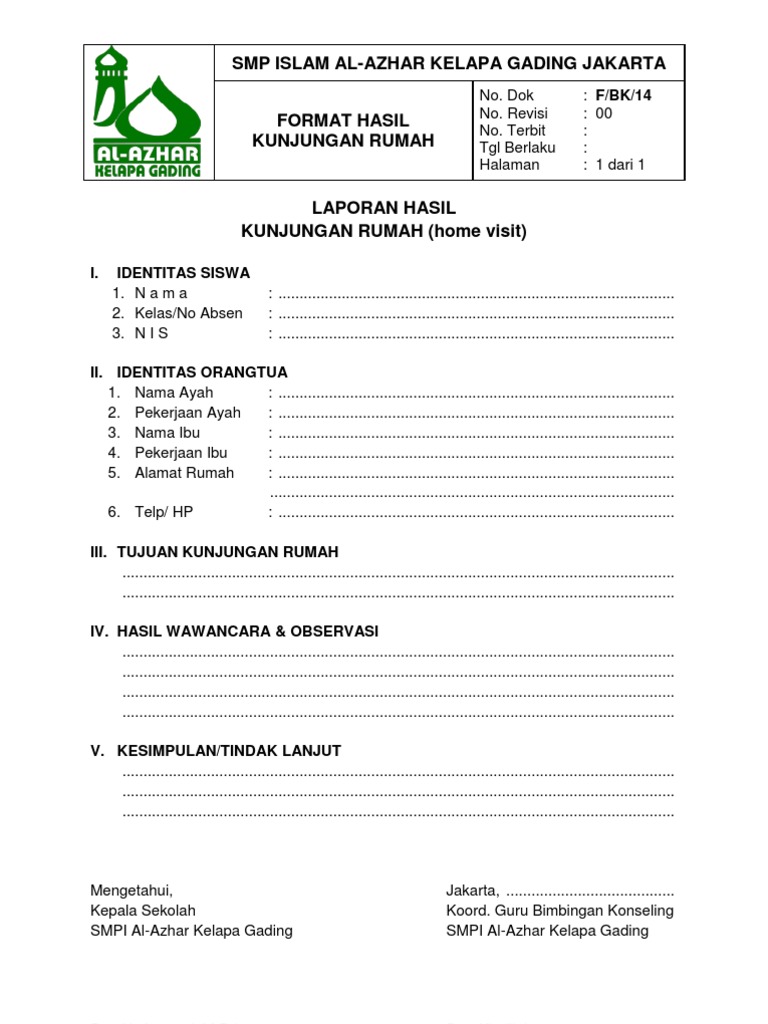 Contoh Laporan Kegiatan Kunjungan Rumah Home Visit Guru Loyal