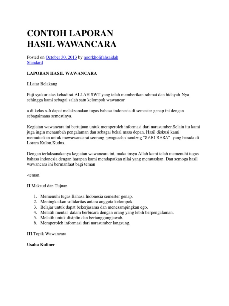 Format Menulis Laporan Hasil Wawancara Ruang Baca Kelas Iv Sd