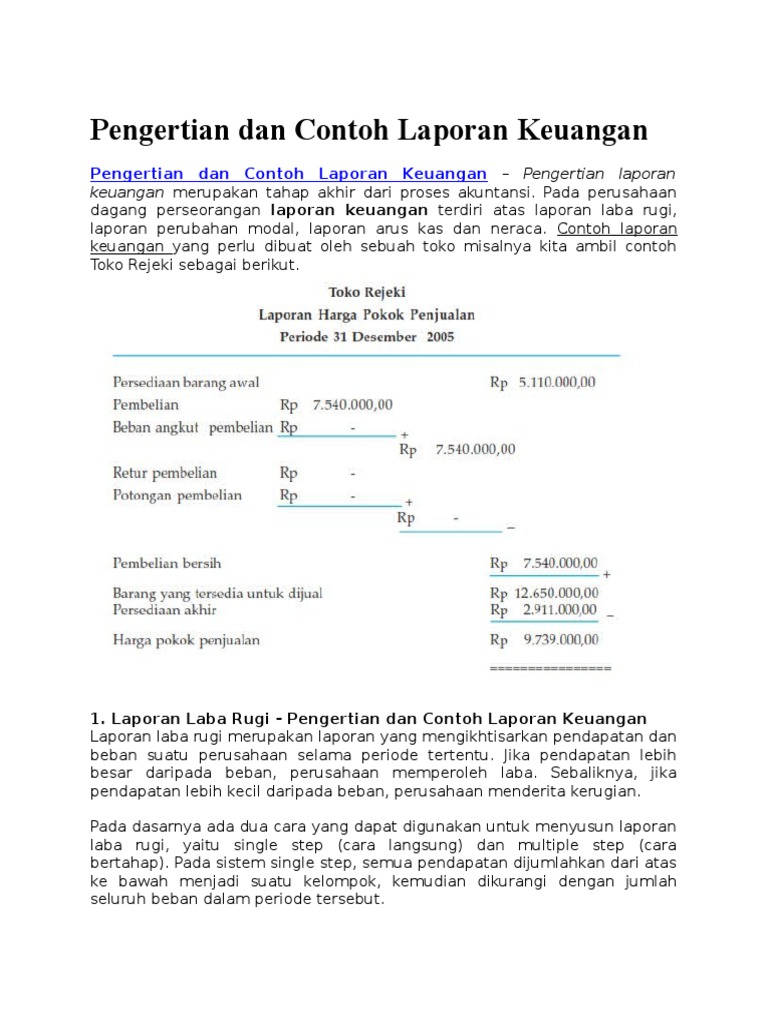 Pengertian Dan Contoh Laporan Keuangan