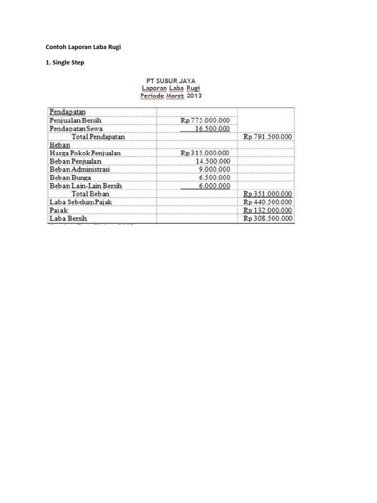 Contoh Laporan Laba Rugi Multiple Step Single Step Perusahaan Jasa