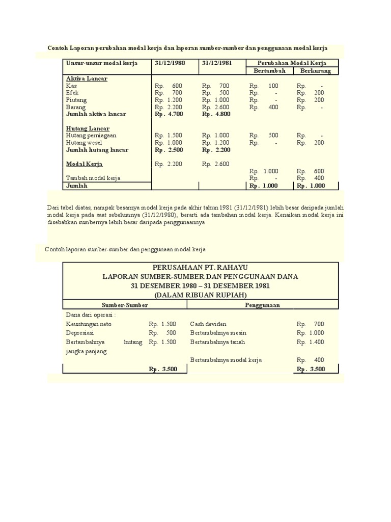 Contoh Laporan Perubahan Modal Kerja Dan Laporan Sumber