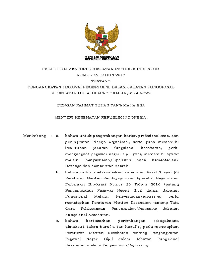 Pmk No 42 Ttg Pengangkatan Pns Dalam Jabfung Kesehatan Melalui Inpassing