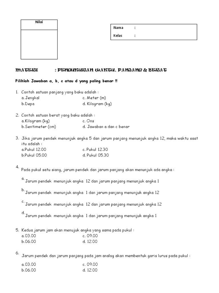 Contoh Soal Satuan Berat Dan Jawabannya Cilacap Klik