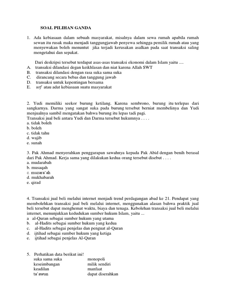 Ia bermaksud meminjam uang kepada temannya yaitu pak hasan. Contoh file soal uts lengkap kelas 1 6 sd mi semua mata pelajaran 2016 2017 berikut ini adalah kumpulan dari berbagi sumber tentang contoh soal uts ekonomi syariah yang bisa gunakan untuk bank soal download sd dan diunduh secara gratis dengan menekan tombol download biru dibawah ini. Soal ekonomi syariah halaman 6 c.