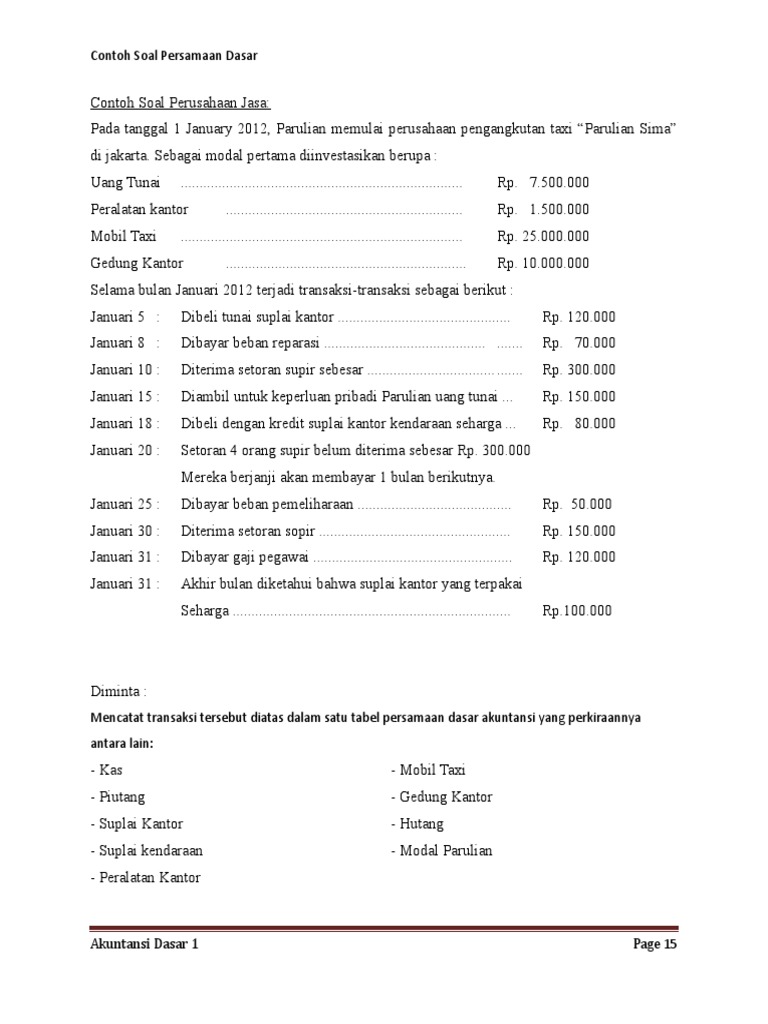 3 Contoh Soal Persamaan Dasar 3 Doc Contoh Soal Persamaan Dasar Contoh Soal Perusahaan Jasa Pada Tanggal 1 January 2012 Parulian Memulai Perusahaan Course Hero