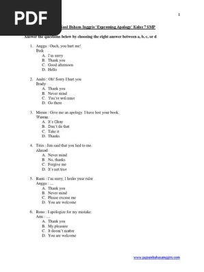 Soal Bahasa Inggris Expressing Apology Kelas 7 Smp Docx