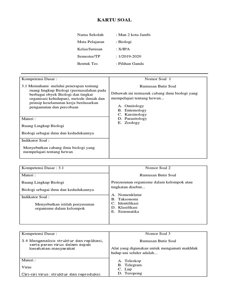 Ini Contoh Soal Uts Biologi Kelas X Semester I Tentang Ruang Lingkup Biologi