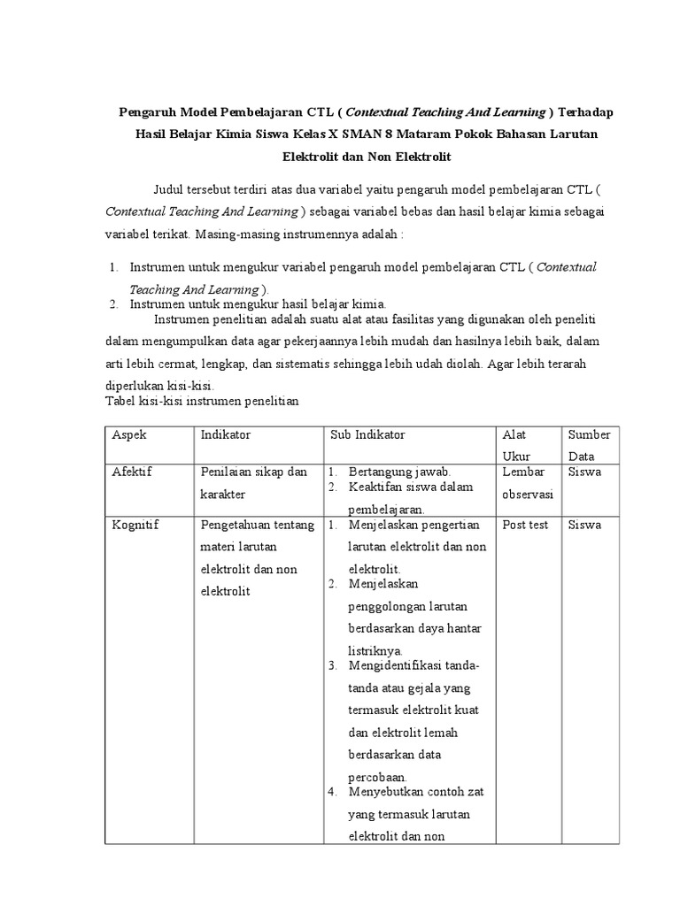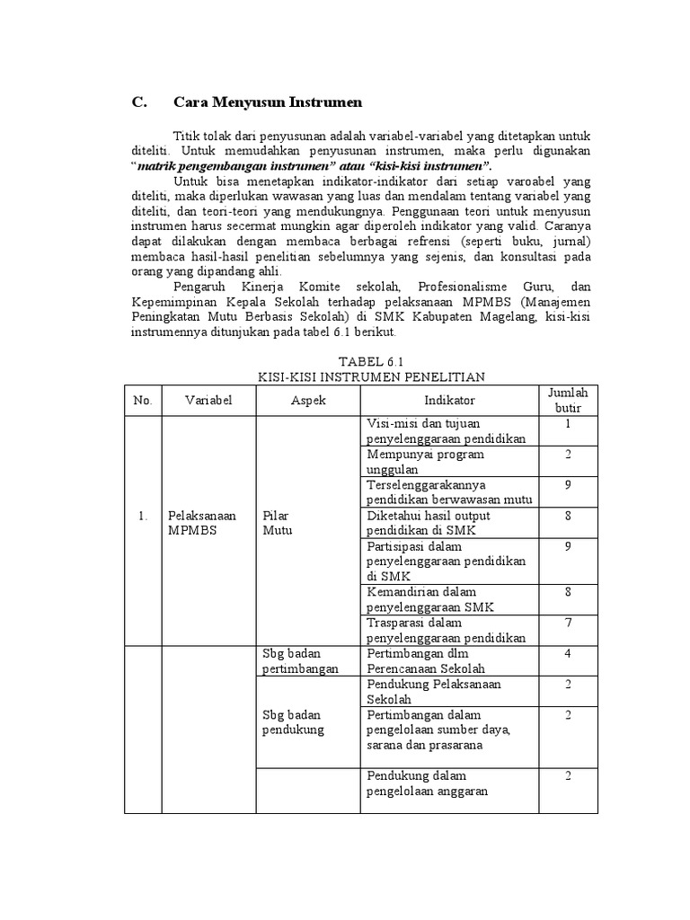 Contoh tabel kisi kisi instrumen penelitian. Instrumen penelitian berdasarkan pada kisi kisi instrumen di atas disusun instrumen penelitian. Instrumen penelitian adalah aspek pengumpulan data yang dilakukan dalam penelitian ilmiah. Tabel 66 kisi kisi instrumen yang diperlukan untukmengukur gaya kepemimpinan situasi kepemimpinan dan iklim kerja organisasi variabel indikator no.