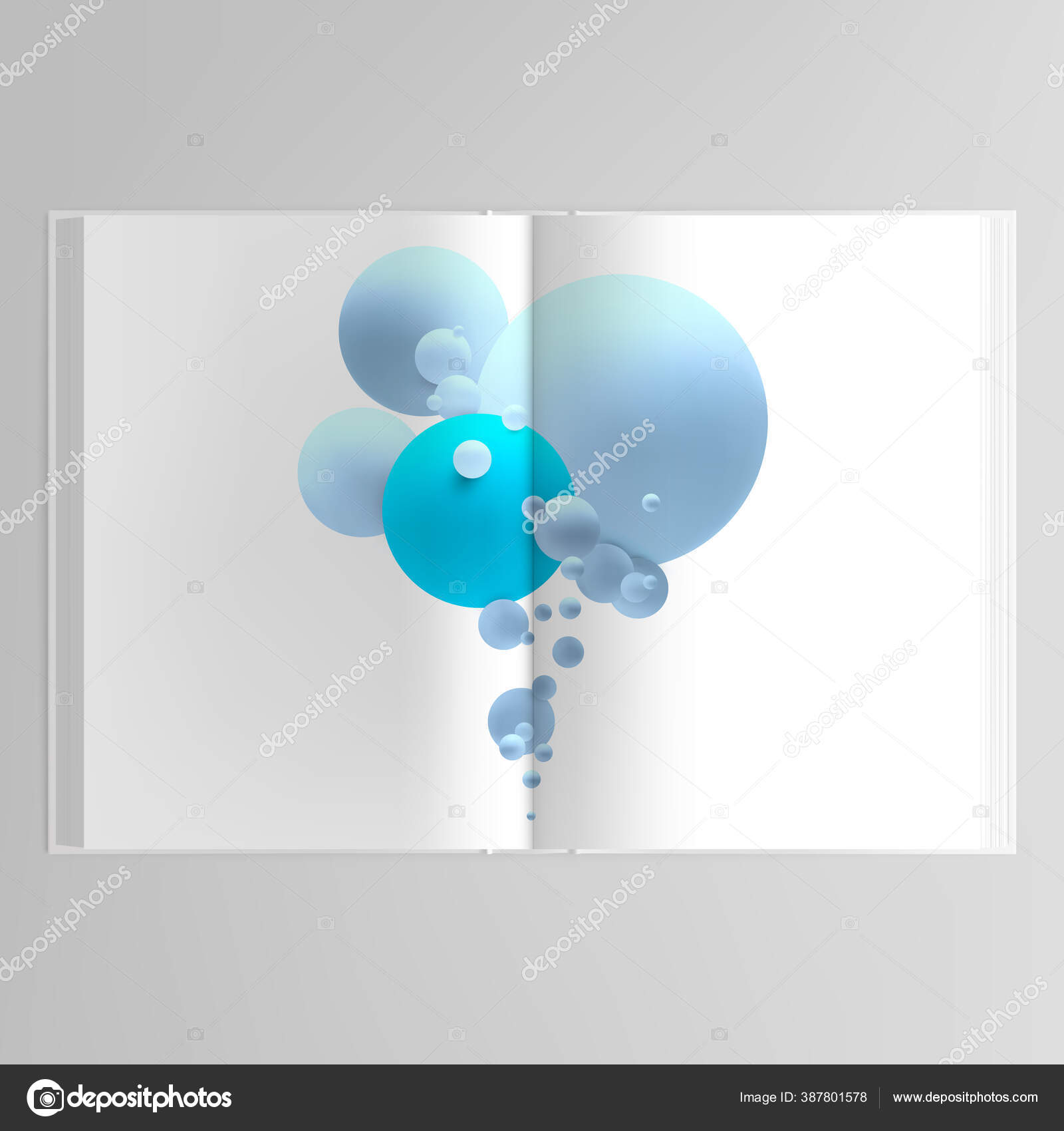 3d Tata Letak Vektor Realistis Dari Templat Desain Mockup Penutup Untuk Brosur Bifold A4 Flyer Desain Sampul Desain Buku Majalah Gelembung Warna Biru Komposisi Abstrak Dengan Bola Atau Bola 3d Stok