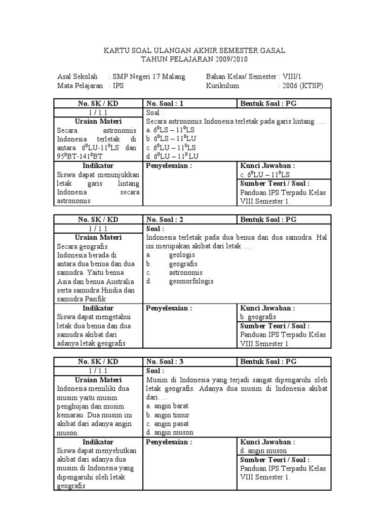 Soal Essay Ips Kelas 8 Semester 1 Beserta Kunci Jawaban Guru Ilmu Sosial