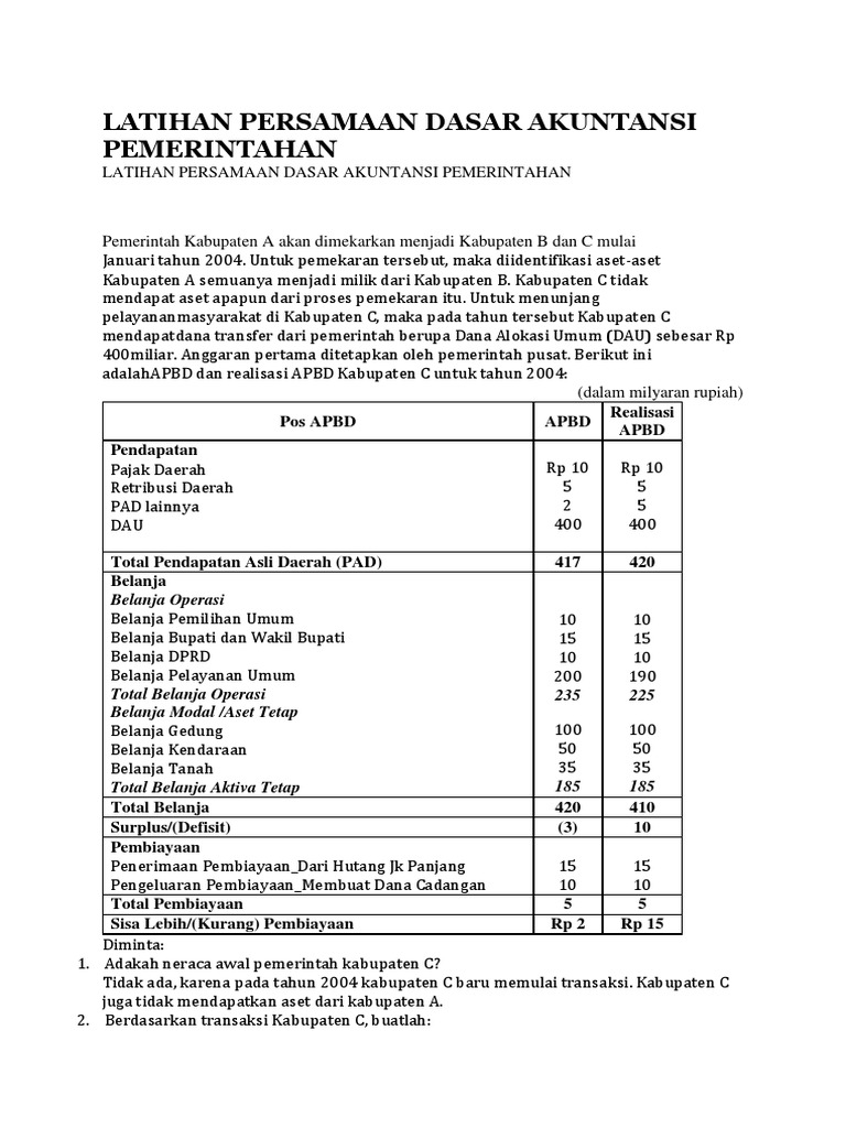 Latihan Persamaan Dasar Akuntansi Pemerintahan Docx