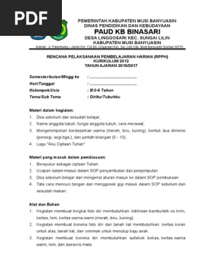 Contoh Rpph Untuk Paud Tk K13 Revisi 2020 2020 Info Dokumen Paud Sch Paperplane