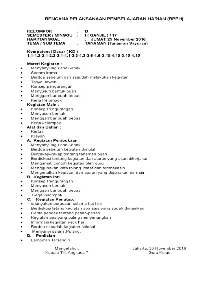 Rpph tk a smt1 minggu15 tanaman hias tanaman perdudocx akses disini rpph tk a smt1 minggu16 jenis sayur dan apotik hidupdocx akses disini rpph tk a smt1 minggu17 jenis buah jenis umbidocx akses disini rpphrkh tk a kurikulum 2013 semester 2 minggu ke 1 sd 8 rpph tk a smt 2 minggu01 tempat rekreasidocx disini. Raudhatul athfal yang selanjutnya disingkat ra atau bustanul athfal yang selanjutnya disingkat ba adalah.