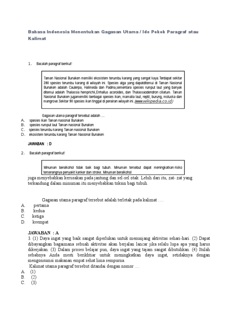 Soal Bahasa Indonesia Gagasan Pokok