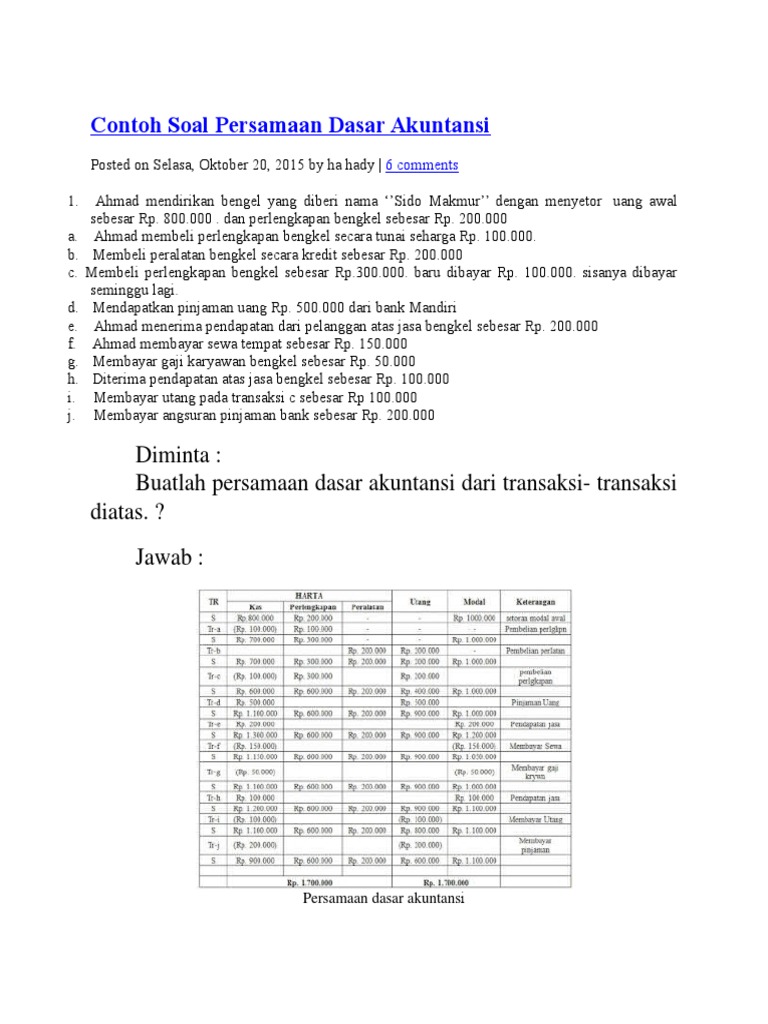 Contoh Soal Persamaan Dasar Akuntansi Dan Jawabannya Dapatkan Contoh