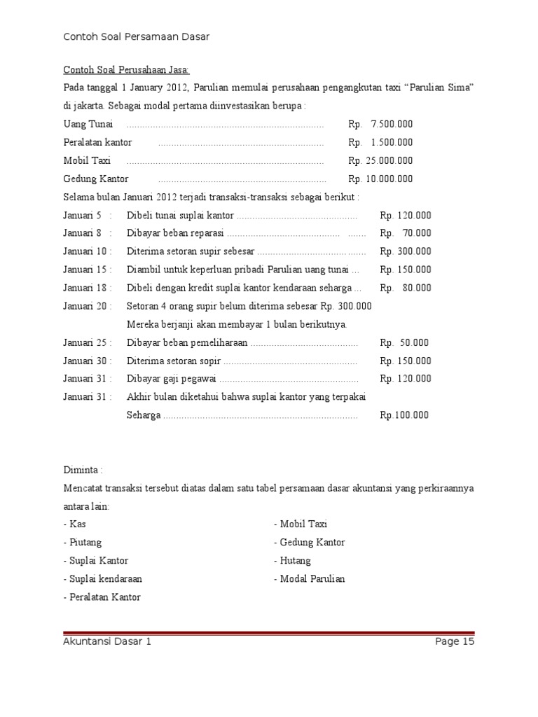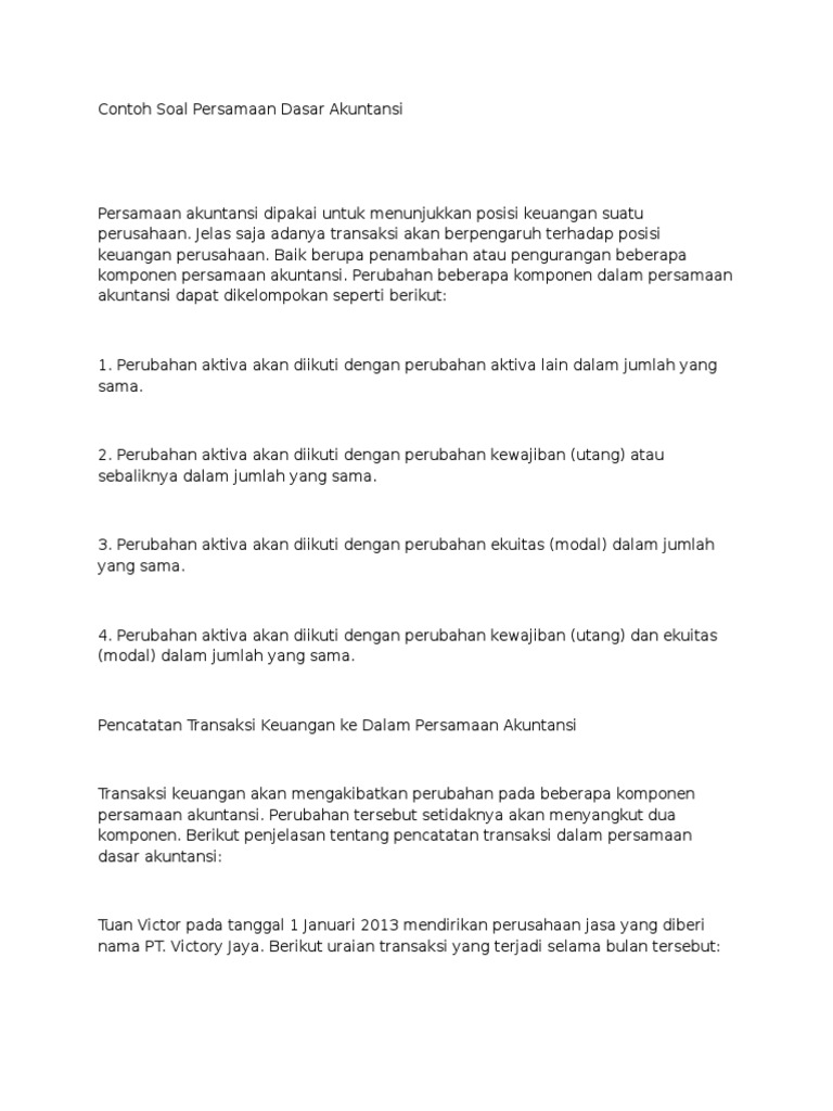 Contoh Soal Persamaan Dasar Akuntansi Diminta Buatlah Persamaan Dasar Akuntansi Dari Transaksi Transaksi Diatas Jawab Pdf Download Gratis