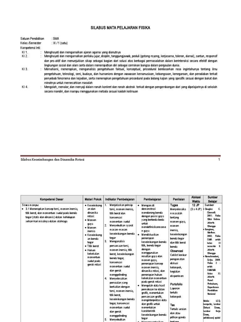 1 Silabus Kesetimbangan Dan Dinamika Rotasi 2017 Doc