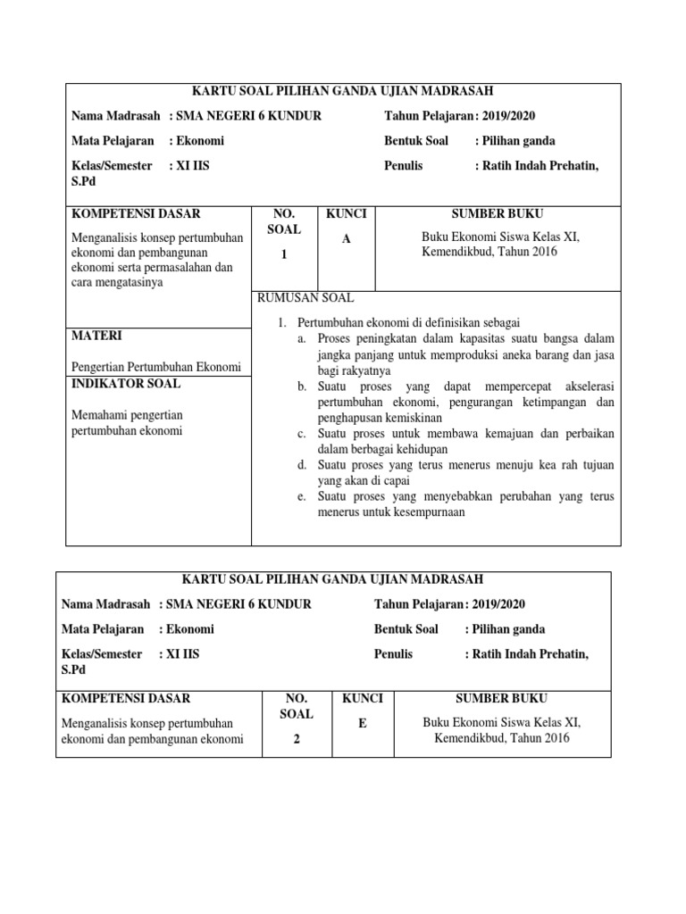 Contoh Soal Ekonomi Pembangunan 1 Pendidikan Ekonomi