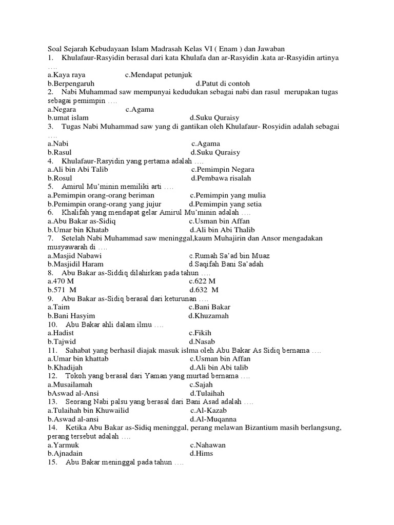 Soal Tarikh Islam Kelas Iii Semester 1