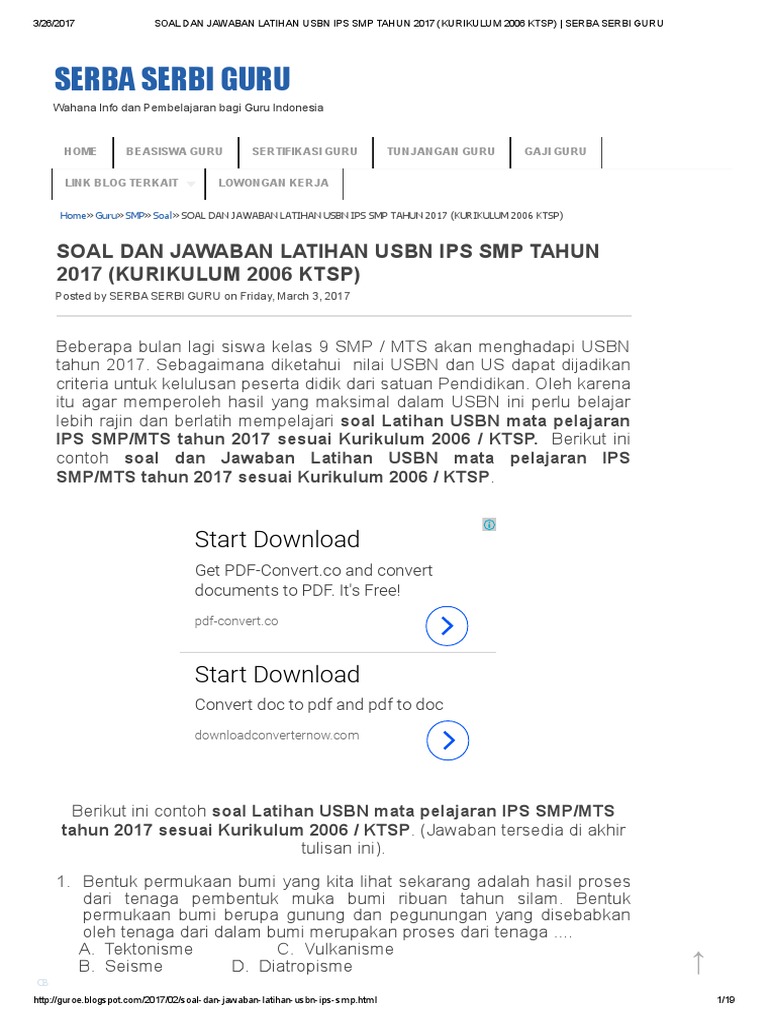 Soal Dan Kunci Jawaban Usbn Ips Smp Kurikulum 2013 Tahun Pelajaran 2018 2019 Didno76 Com