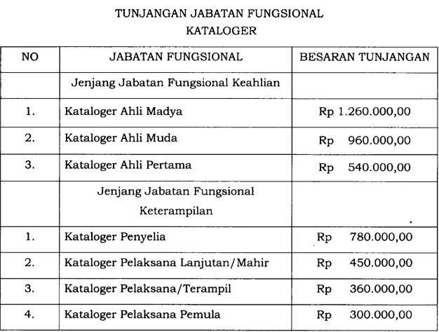 Besaran Tunjangan Fungsional Kataloger Tiap Golongan Berdasarkan Perpres Nomor 53 Tahun 2019 Berbagi Ilmu